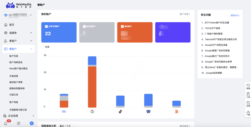 所以,与其说媒介管家是一个「开广告户的系统」,不如说,它是一套把开户、风控、预算和数据整合在一起的广告账号与预算一站式管理系统。