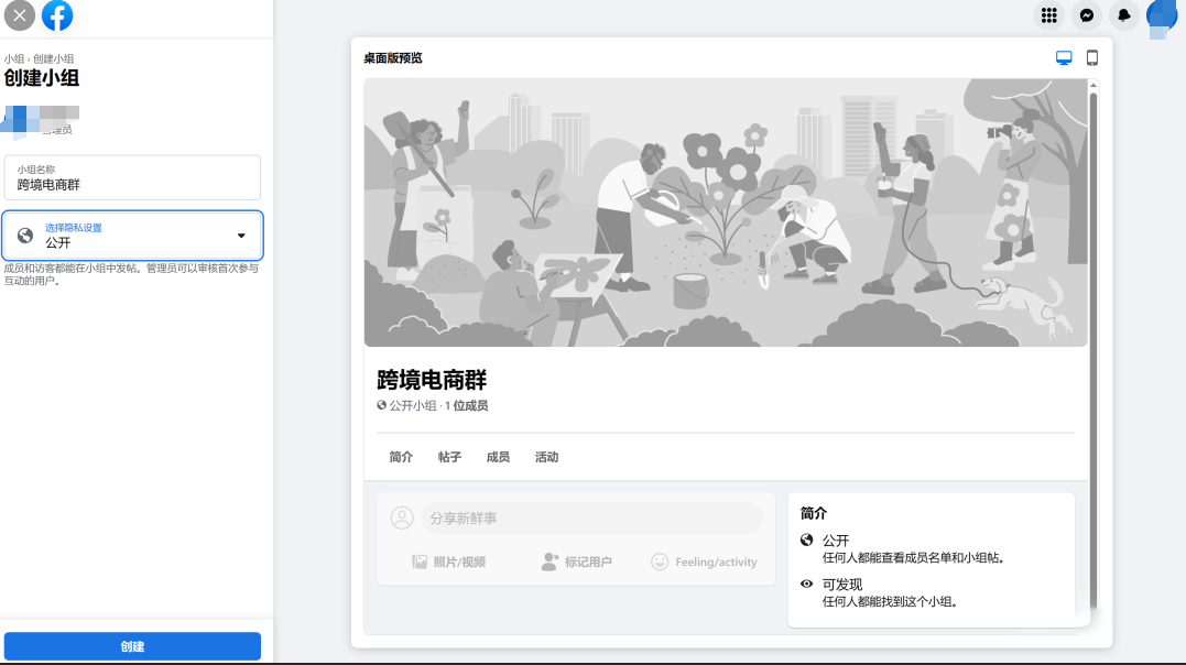 对于品牌营销群组,推荐使用Facebook主页身份创建,因为这样群组将直接关联主页,发帖时显示主页身份,实现主页与群组的互动。