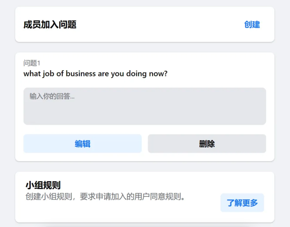 设置成员加入问题可以帮助你筛选潜在客户,提高群组的质量。管理员最多可以设3个问题,这些问题应该围绕群组的主题和受众群体来设计。