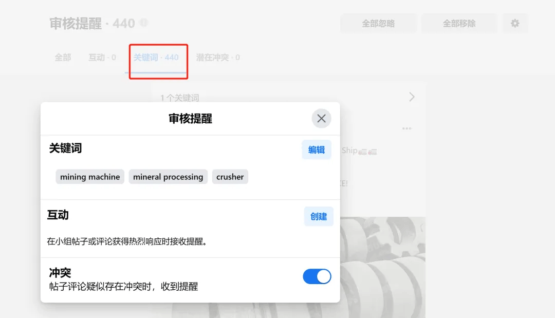 管理员可以设定一些和群组主题相关的关键词,比如产品名称、品牌词。当群组成员发布包含这些关键词的帖子,管理员就会收到提醒,方便及时审核和处理,让群组内容更有针对性和纯净度。