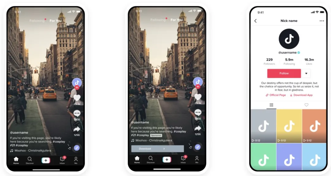 TikTok视频广告自然融入用户“For You”页面,以9-15秒简短精悍的视频形式,吸引用户注意力。用户可以自由点赞、评论甚至分享,这就像对待普通内容一样,它的原生感强、参与度高,但却不同于创作者推广的Spark广告。