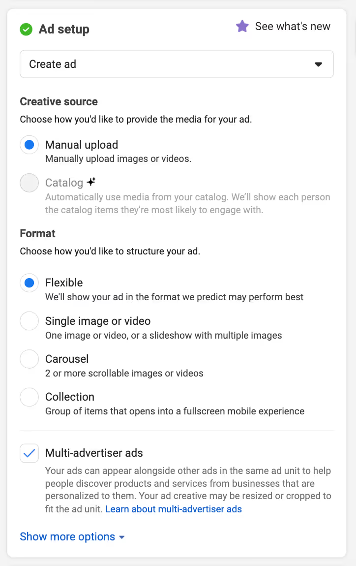 动态创意和Flexible格式确实有相似之处,它们都用于根据提供多种选择来创建广告变体。一个主要区别是灵活格式是在广告级别启用的,而不是在广告组级别启用的。这意味着,一旦广告组开始了,用动态创意就比较难改了,而Flexible格式就更灵活些。