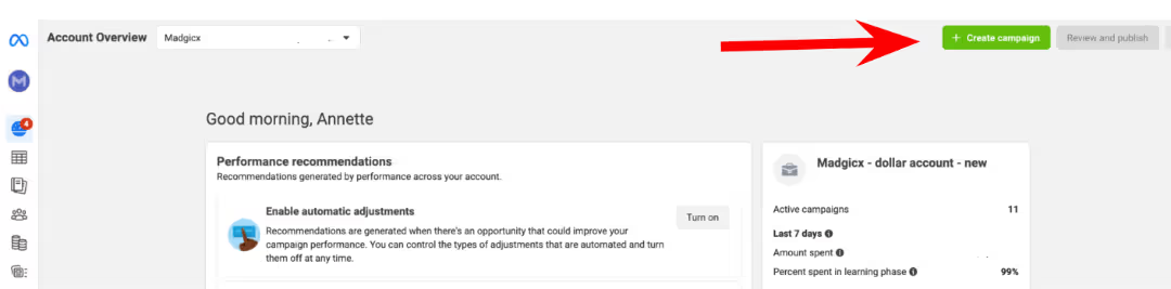1.打开Meta Ads Manager,点击“创建广告活动”。