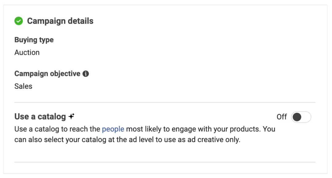 4.如果你选了“销售”作为目标,记得向下滚动并关闭“使用目录”功能哦。(如果选择“应用推广”,这一步就跳过了。)